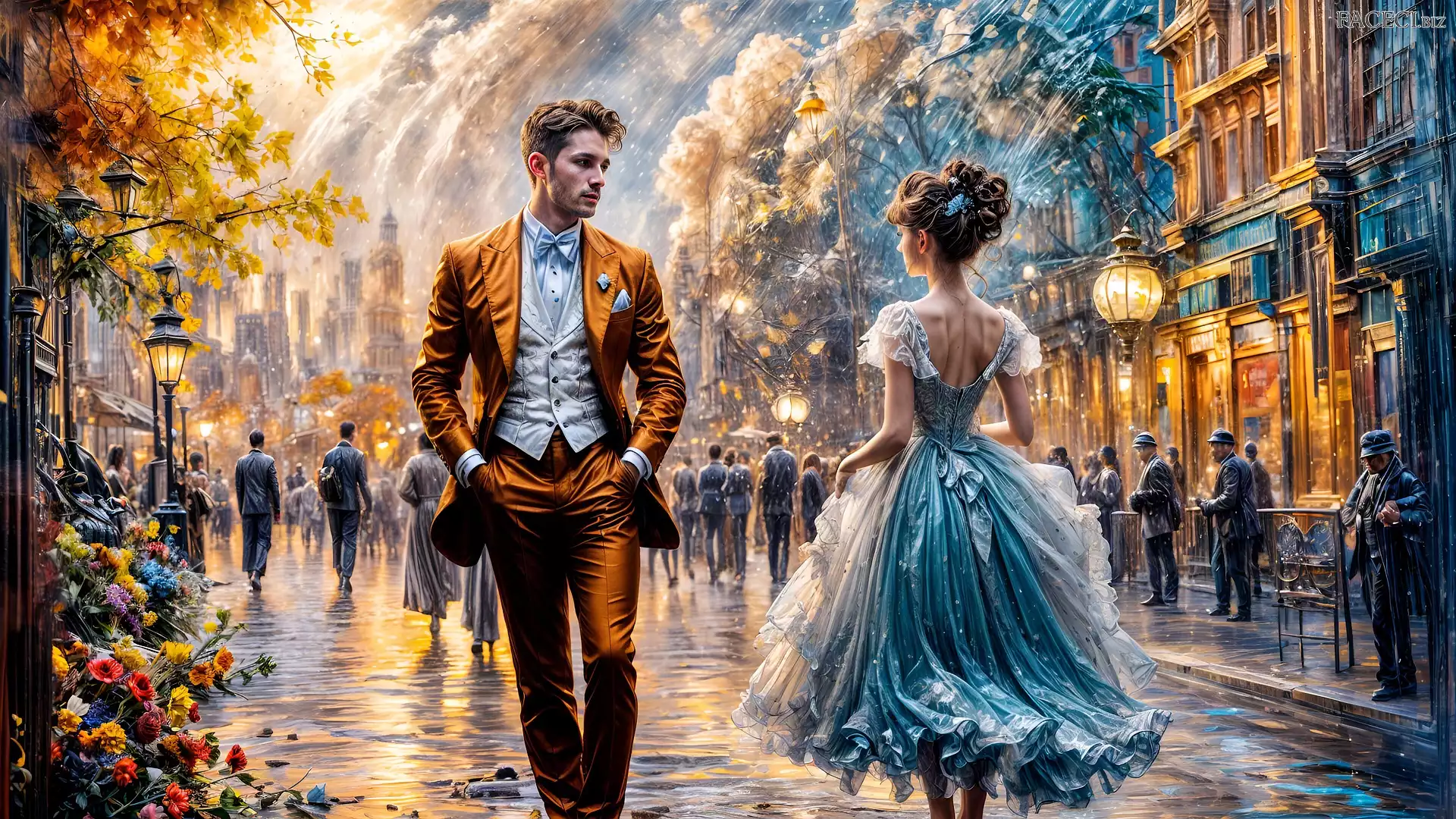 Mężczyzna, Kobieta, Wieczór Reprodukcja obrazu, Ulica - faceci.biz