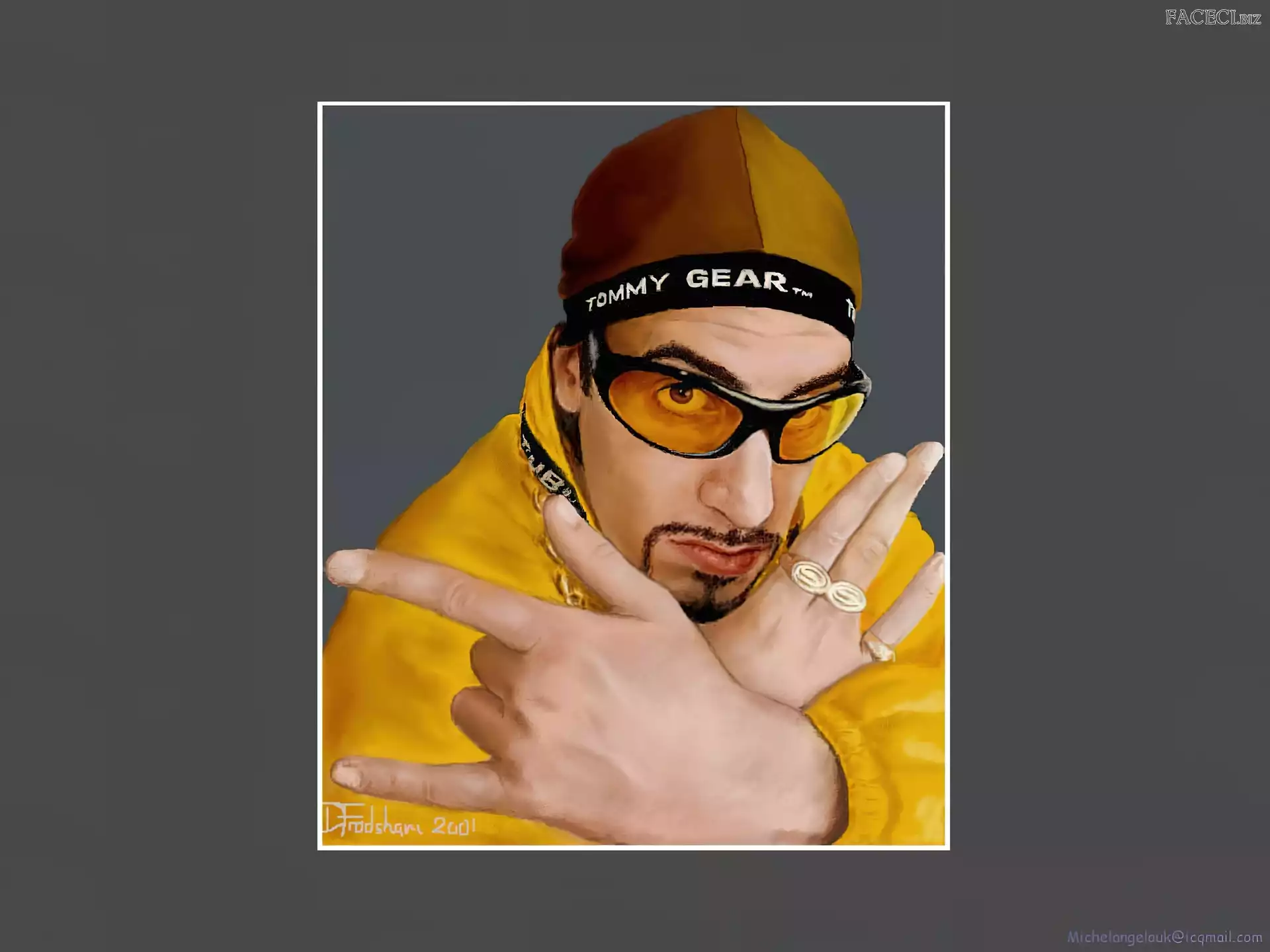 Sasha Baron Cohen, zdjęcia Sasha Baron Cohen, gruby łańcuch Sasha Baron Cohen, żółty strój złoty strój, Sasha Baron Cohen, okulary Sasha Baron Cohen, niebieski dres Sasha Baron Cohen, ali g Sasha Baron Cohen, borat